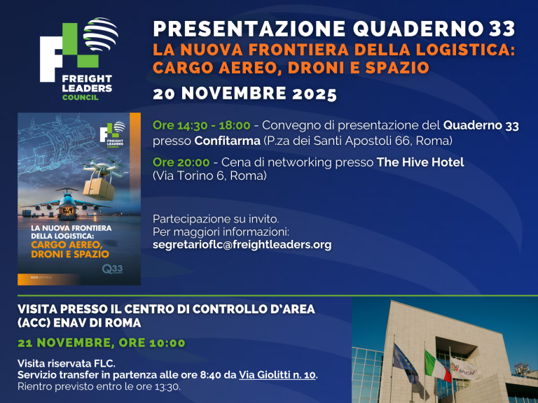 È iniziato il conto alla rovescia per la presentazione del Quaderno 33 del FLC! Il volume, dal titolo “La nuova frontiera della logistica: cargo aereo, droni e