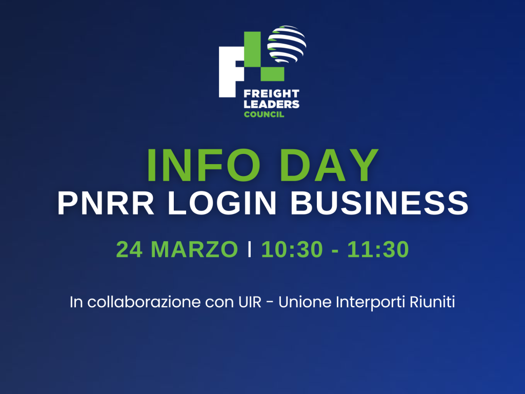 Non perdere l’appuntamento con l’Info Day dedicato al PNRR LOGIN BUSINESS organizzato da FLC e Unione Interporti Riuniti (UIR), un’occasione per approfondire le strategie, le innovazioni e le opportunità che il Piano Nazionale di Ripresa e Resilienza offre al settore della Logistica e dei Trasporti attraverso la Missione 3, Componente 2 (M3C2) focalizzata sull’intermodalità e la logistica Integrata, con l’obiettivo di migliorare l’efficienza e la sostenibilità del sistema dei trasporti in Italia.