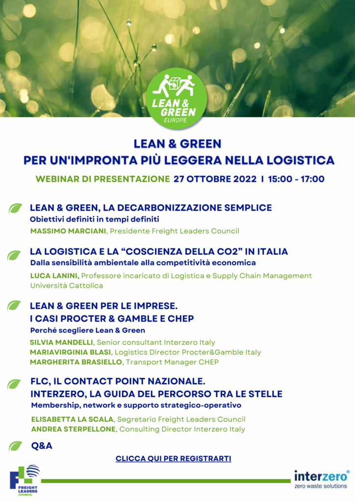 Freight Leaders Council in collaborazione con Interzero Italy, realtà che offre soluzioni ambientali integrate, presentano online il Programma Lean & Green, strumento per il monitoraggio e la riduzione della Co2 nei trasporti.